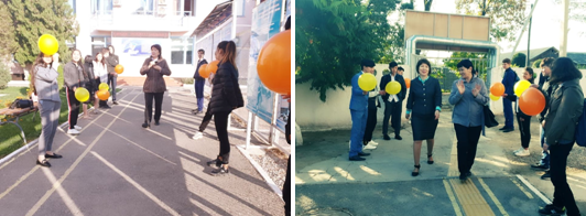 Жұмыс күні басталысымен колледж белсенділері "Ұстаздарға кұрмет" акциясын өткізді. Әр мұғалімді салтанатты түрде қарсы алып, ерекше кұрмет көрсетті. Өте әсерлі болған керемет іс-шара концерттік бағдарламаға ұласты.