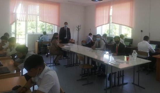Емтиханға оқу аудиторияларындағы санитарлық талаптар колледж әкімшілігі тарапынан қатаң қадағалана отырып, «Таза сессия» акциясы аясында Тараз қаласының Жастар орталығы жанындағы «Темірқазық» еріктілер қозғалысының жетекшісі Жиенбай Н. және жетекші орынбасары Намелбек А, ата-аналар мен білім алушылардан бақылаушылар тобы шақырылды.