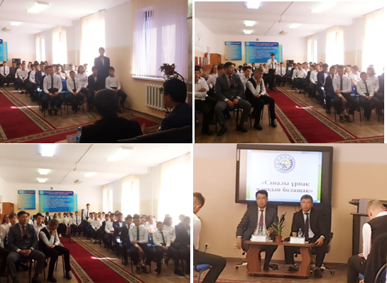В рамках проекта" Саналы ұрпақ " - Жарқын болашақ 10 октября 2019 года со студентами І-ІІ курсов колледжа была проведена встреча первого заместителя руководителя департамента Агентства по противодействию коррупции по Жамбылской области Толебаева Равиля Куанышбаевича.